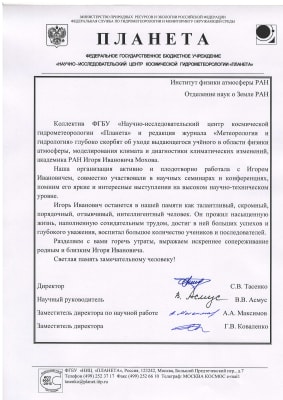 Желающие поделиться воспоминаниями об Игоре Ивановиче Мохове могут отправить сообщение на почту ifaran@ifaran.ru.
